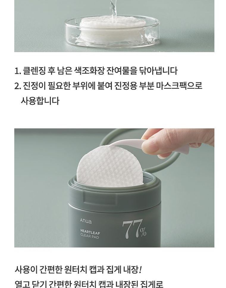 The ANUA Heartleaf 77% Toner Pads are pre-soaked with the brand’s bestselling Heartleaf 77% Soothing Toner, designed to deliver hydration while calming sensitive or irritated skin. Each pad features a dual texture: the embossed side removes dead skin cells and impurities, while the smooth side replenishes moisture and balances the skin. Powered by 77% houttuynia cordata (heartleaf) extract, these pads reduce redness and irritation, while the Anti Sebum P complex (pine leaf, evening primrose, elm root, and kudzu root extracts) helps control excess sebum and minimize pores. Added botanicals such as centella asiatica and green tea provide extra soothing and antioxidant benefits, leaving skin soft, clear, and refreshed.